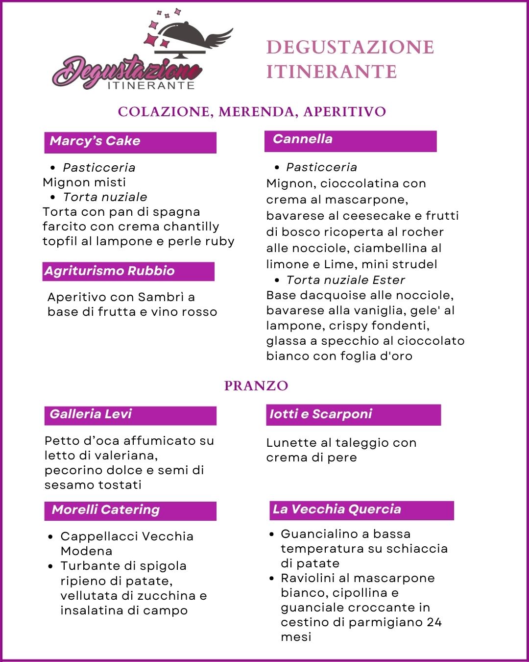 Questi i catering e le pasticcerie che vi faranno degustare le loro specialità